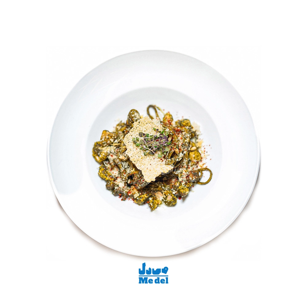 لینگوئینی همراه با سبزیجات رست شده و سس پومودورو