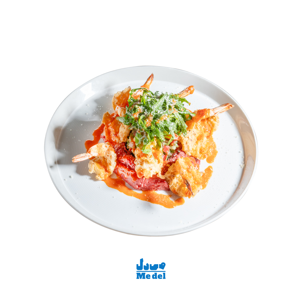 میگو. پوره لبو. سالسا آووکادو. روکولا