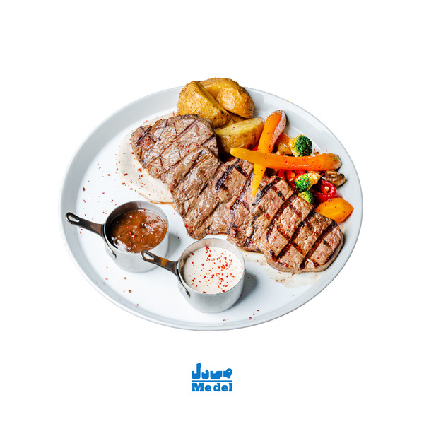 استیک فیله گوساله، سس قارچ، پیاز قرمز